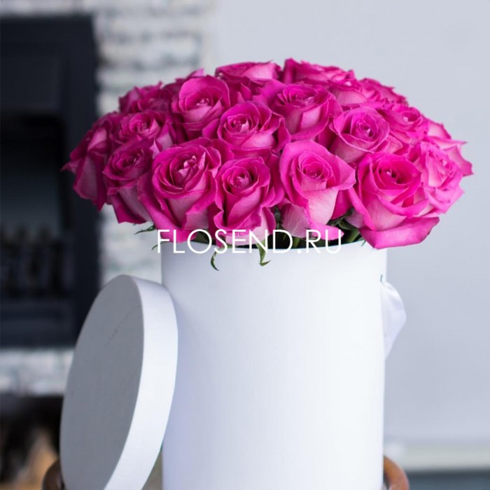 25 розовых роз в коробке