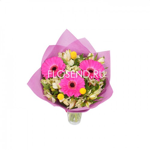 Букет из гербер и ирисов, эустом в Ногинске