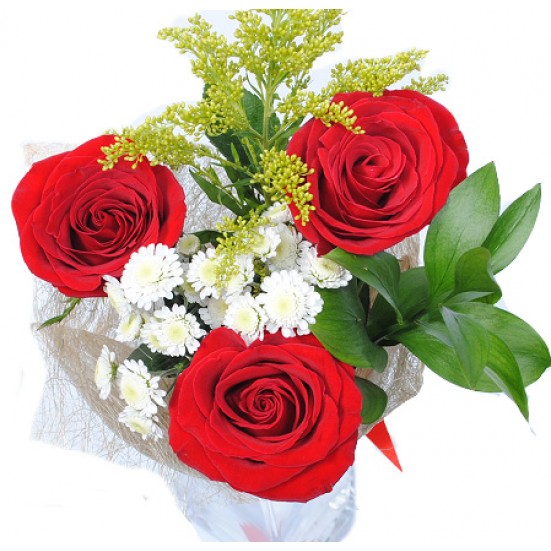 Букет «3 красных роз и 2 белых хризантем» в Ногинске
